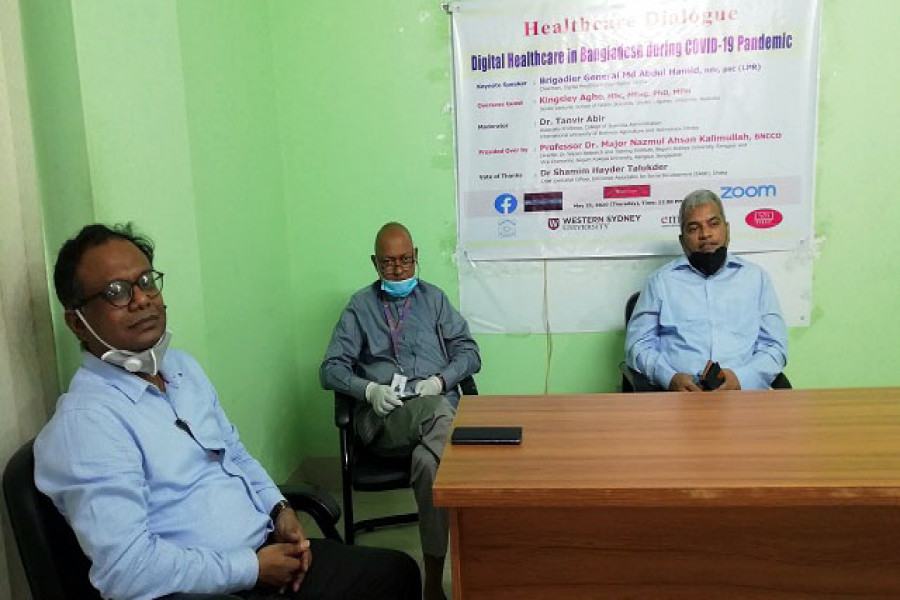 আলোচনা সভায় ঢাকাস্থ ডিজিটাল হেলথ কেয়ারের চেয়ারম্যান ব্রিগেডিয়ার জেনারেল মোঃ আব্দুল হামিদ, এনডিসি, পিএসসি (এলপিআার) মূলপ্রবন্ধ উপস্থাপন করেন। এসময় তিনি বলেন, বর্তমান পরিস্থিতিতে সুস্থ এবং করোনা আক্রান্ত উভয় ব্যক্তিরাই ঘরে থাকা জরুরি। এ পরিস্থিতিতে টেলিমেডেসিন নামক ভার্চুয়াল যোগাযোগ মাধ্যম ব্যবহার করে অনেক সেবাপ্রার্থী চিকিৎসা নিচ্ছেন। যেটি ডিজিটাল হেলথ বা ই-চিকিৎসা সেবার একটি অংশ। এর মাধ্যমে রোগী এবং ডাক্তারের মাঝে ভিডিও কনফারেন্সের মাধ্যমে যোগাযোগ স্থাপন করা হয়। তিনি বলেন, বর্তমানে যুক্তরাষ্ট্রে, ইউরোপসহ বিভিন্ন উন্নত রাষ্ট্রে একই ধরনের চর্চা করা হচ্ছে। তবে আমাদের স্বাস্থ্যখাতে সীমাবদ্ধতা রয়েছে।