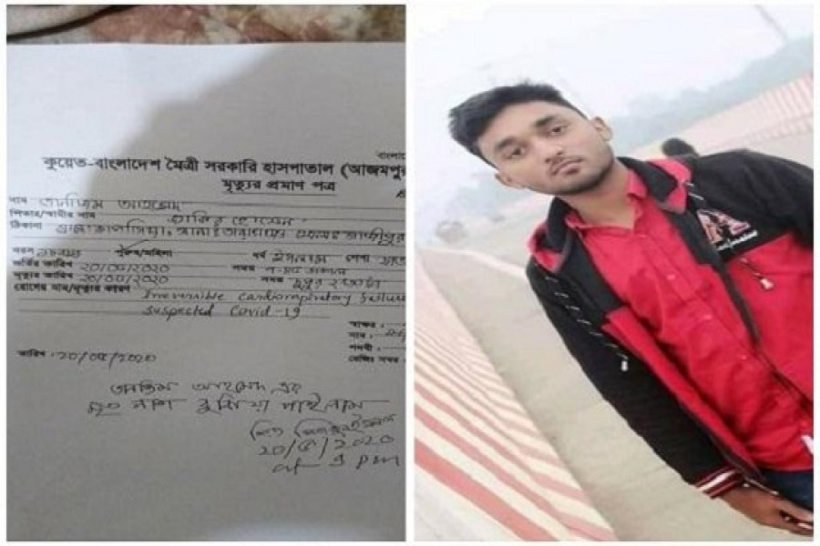 প্রাণঘাতী নভেল করোনাভাইরাস সন্দেহে বিনা চিকিৎসায় মৃত্যু হল তানজিম আহমেদ নামে এক কলেজ শিক্ষার্থীর। এমনকি মৃত্যুর পর বাবাকে না জানিয়ে লাশের দাফন সম্পন্ন করে দেয়ার অভিযোগ উঠেছে হাসপাতাল কর্তৃপক্ষের বিরুদ্ধে। অথচ মৃত্যুর পরে দেখা যায় ওই রোগীর করোনা নেগেটিভ ছিলো।