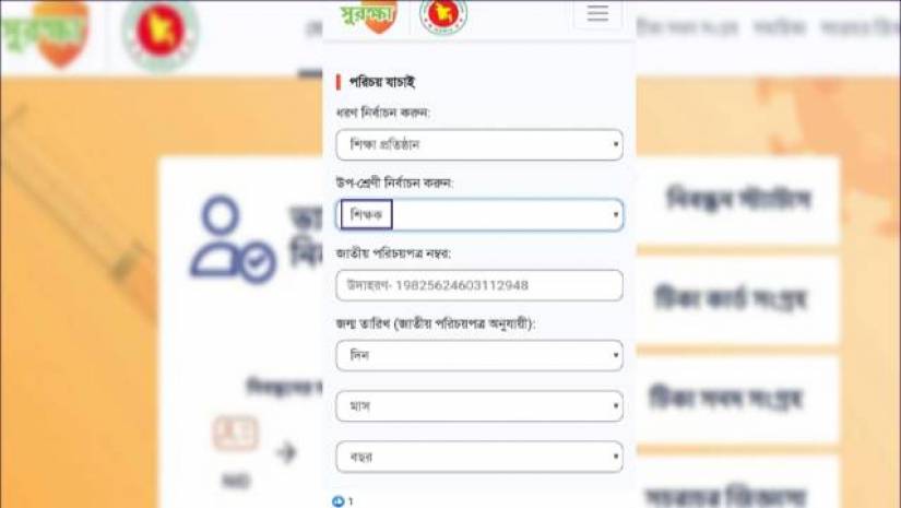 সারাদেশে করোনাভাইরাসের টিকাদান কর্মসূচির জন্য নিবন্ধন ওয়েবসাইট সুরক্ষায় ‘শিক্ষক’ ক্যাটাগরি যুক্ত করা হয়েছে। মঙ্গলবার রাত থেকে বিভিন্ন ক্যাটাগরির পাশাপাশি শিক্ষক ক্যাটাগরিতে নিবন্ধন করতে পারছেন শিক্ষকরা। তবে যেসব শিক্ষকদের বয়স ৪০ এর কম তারা এখনও নিবন্ধন করতে পারছেন না।