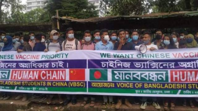 অগ্রাধিকার ভিত্তিতে চীনের সিনোফার্মের টিকা দিতে দেশটির বিভিন্ন বিশ্ববিদ্যালয়ে অধ্যয়নরত বাংলাদেশি শিক্ষার্থীরা প্রধানমন্ত্রীর কাছে দাবি জানিয়েছেন। এসময় বিশেষ ব্যবস্থায় স্টুডেন্ট ভিসা চালু করতে পররাষ্ট্র মন্ত্রণালয় ও চীনা রাষ্ট্রদূতের সহযোগিতা চেয়েছেন তারা। করোনার টিকা নিয়ে অনিশ্চয়তা তৈরি হওয়ায় চীনে অধ্যয়নরত ছয় থেকে সাত হাজার শিক্ষার্থীর ক্যারিয়ার হুমকির মুখে পড়েছে বলে জানিয়েছে শিক্ষার্থীরা।
