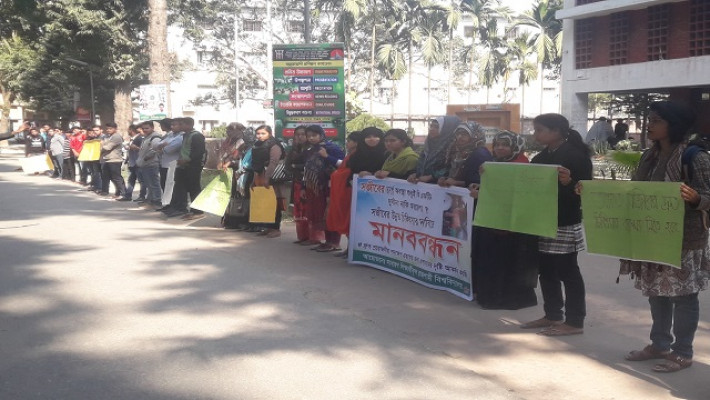 রাবির ঝুঁকিপূর্ণ ভবন সংস্কারের দাবিতে মানববন্ধন