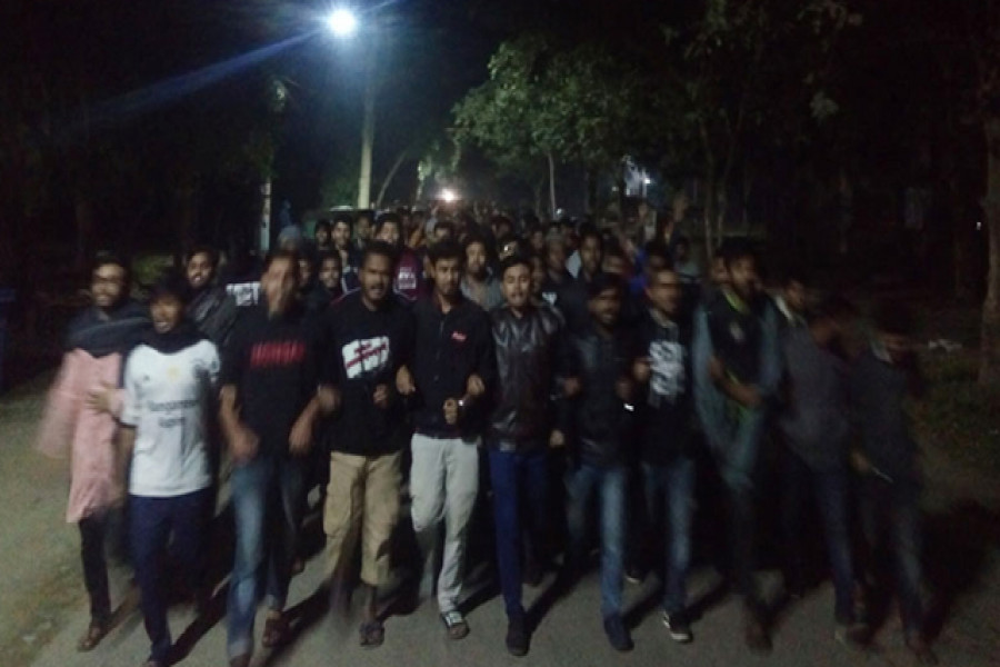 শাহজালাল বিজ্ঞান ও প্রযুক্তি বিশ্ববিদ্যালয়ে (শাবিপ্রবি) ছয় দফা দাবিতে বিক্ষোভ মিছিল করেছে শাখা ছাত্রলীগ। এ নিয়ে বুধবার (১১ ডিসেম্বর) রাত সাড়ে ৯টার দিকে বিশ্ববিদ্যালয়ের শাহ পরাণ হলের সামনে একত্রিত হতে থাকে ছাত্রলীগের নেতা-কর্মীরা। পরে ক্যাম্পাসের বিভিন্ন গুরুত্বপূর্ণ সড়ক প্রদক্ষিণ করে উপাচার্যের বাস ভবনের সামনে ঘুরে আবারও একই স্থানে এসে সমাবেশ করেন।