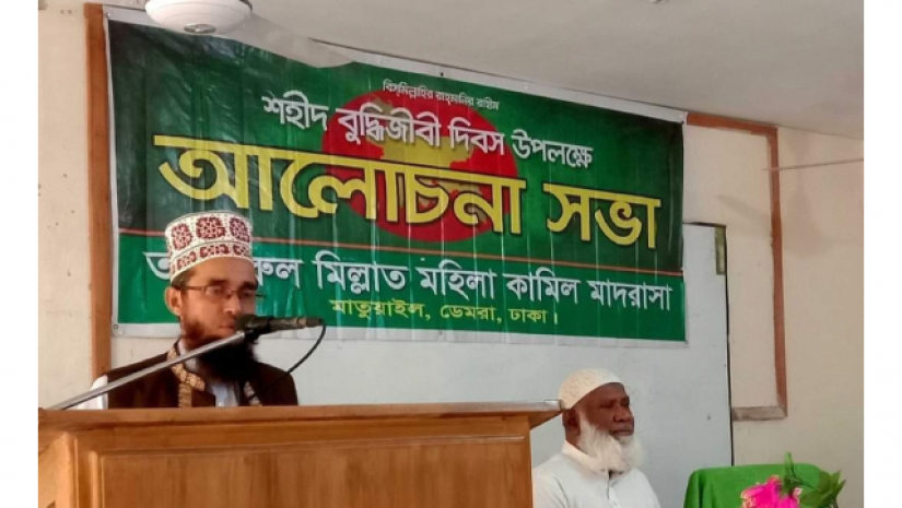 আজ বুধবার (১৪ ডিসেম্বর) সকালে তা’মীরুল মিল্লাত মহিলা কামিল মাদ্রাসা ডেমরার এক মিলনায়তনে শহীদ বুদ্ধিজীবী দিবস উপলক্ষ্যে এ আলোচনা সভা অনুষ্ঠিত হয়।