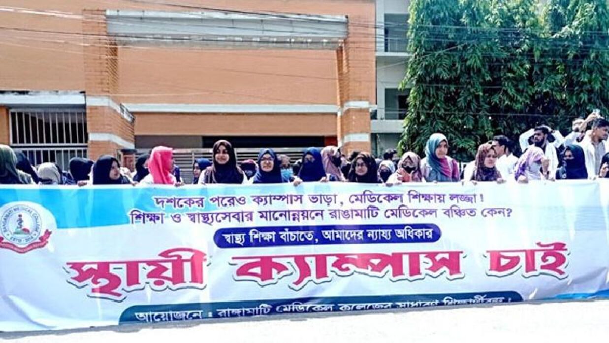 স্থায়ী ক্যাম্পাসের দাবিতে রাঙ্গামাটি মেডিকেল কলেজ শিক্ষার্থীদের বিক্ষোভ