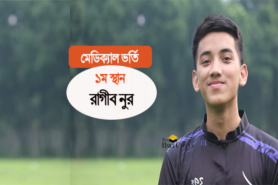 এ বছর মেডিকেল কলেজ ভর্তি পরীক্ষায় প্রথম স্থান অধিকার করেছেন রাগীব নুর। রংপুর ক্যাডেট কলেজের ছাত্র রাগীব। তার নাম্বার ৯০ দশমিক ৫০। গতবছর এই পরীক্ষায় প্রথম স্থান অর্জন করে ইশমাম সাকীব অর্ণব। তার স্কোর ছিল ৮৭.০০।