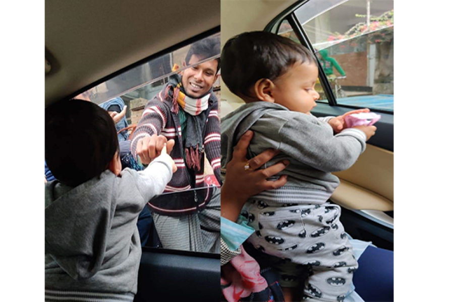 মামাও যখন বুঝছে আমি মাইন্ড করছি না, তখন স্বতঃস্ফূর্তভাবে খুব আদর করে কথা বলছিল এবং খেলছিল। আঙুল দিয়ে পয়েন্ট করে, হাই ফাইভ, হ্যান্ড সেক করে। অনেকক্ষণ যাবৎ তাদের ভাব আদান প্রদান চলে। সিগন্যাল যখন ছাড়বে মামা তার হাতে নতুন ১০ টাকার একটা নোট দিয়ে বলে— মজা খাবে এইটা দিয়ে।