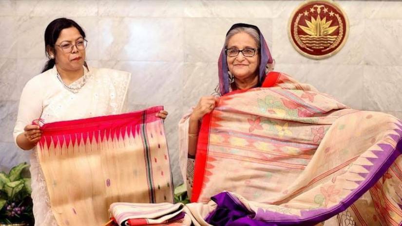 প্রধানমন্ত্রীকে কলা গাছের তন্তু থেকে তৈরি শাড়ি উপহার