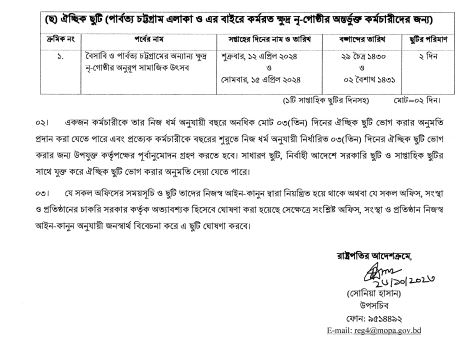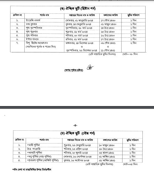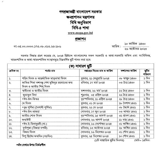 ২০২৪ সালের ছুটির তালিকা প্রকাশ