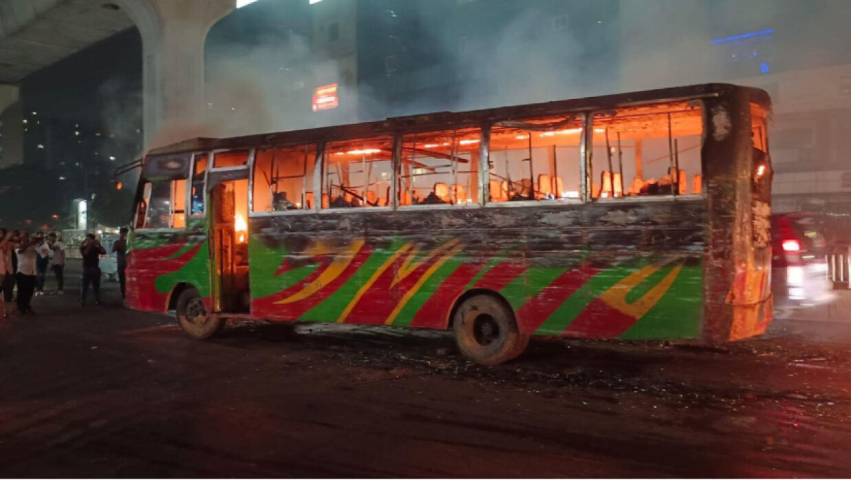 বিএনপির ডাকা দ্বিতীয় দফার অবরোধের প্রথম দিনে রাজধানীর বাংলামোটরে একটি বাসে আগুন দিয়েছে দুর্বৃত্তরা। রোববার সন্ধ্যা সাড়ে ৬টায় বাংলামোটর মোড়ে রূপায়ন টাওয়ারের সামনে একটি বাসে আগুন দেওয়া হয়।