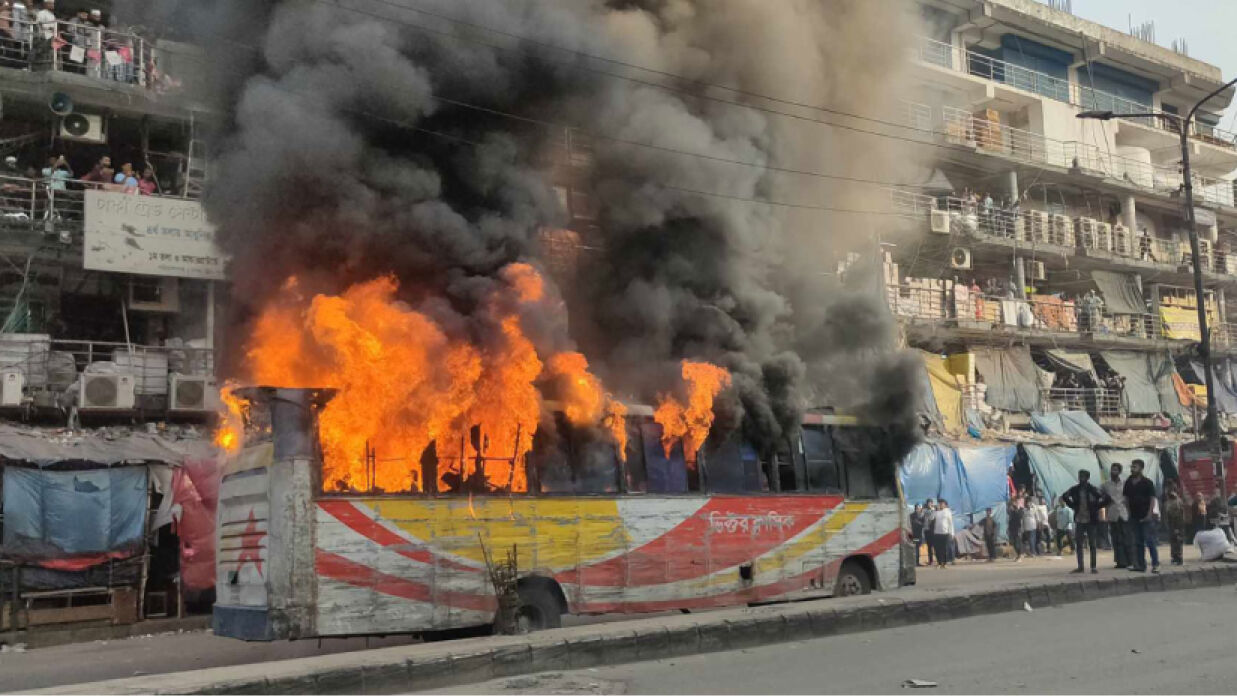 দিনদুপুরে গুলিস্তানে বাসে আগুন