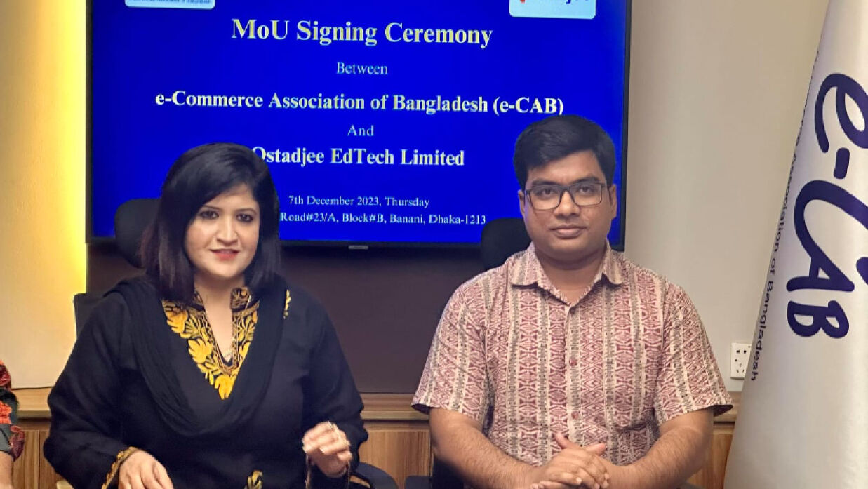 দেশের ই-কমার্স উদ্যোক্তা সংগঠন ই-কমার্স এসোসিয়েশন অব বাংলাদেশ (ই-ক্যাব) ও স্মার্ট শিক্ষাসেবা প্রতিষ্ঠান ওস্তাদজী'র মাঝে সমঝোতা স্মারক স্বাক্ষরিত হয়৷