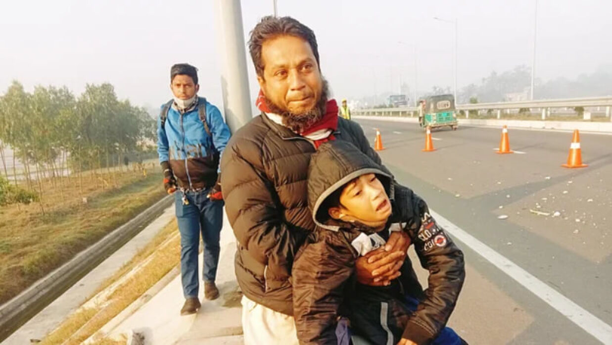 বঙ্গবন্ধু টানেল সড়কে ট্রাকচাপা, বাবার লাশের পাশে ছেলের আহাজারি