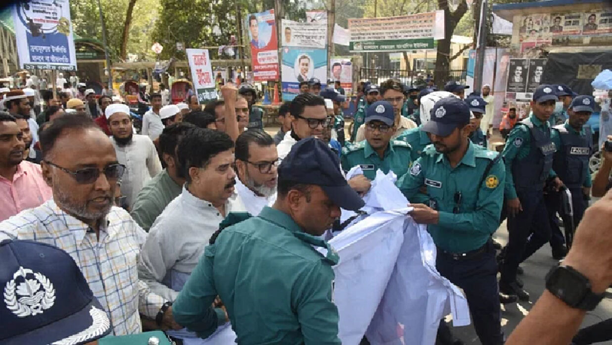১২ দলীয় জোটের ‘ভারত বর্জন’ মিছিলে পুলিশের বাধা