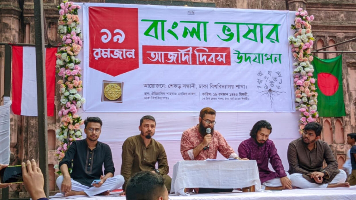 ঢাকা বিশ্ববিদ্যালয়ে উদযাপিত হয়েছে ‘বাংলা ভাষার আজাদী দিবস’। ১৯ রমজানকে রাষ্ট্রীয়ভাবে ‘বাংলা ভাষার আজাদী দিবস’ ঘোষণার দাবী নিয়ে আলোচনা সভা ও ইফতার মাহফিলের আয়োজন করেছে ইতিহাস, ঐতিহ্য ও সংস্কৃতি নিয়ে অনুসন্ধিৎসু একদল তরুণের সংগঠন ‘শেকড় সন্ধানী’, ঢাকা বিশ্ববিদ্যালয় শাখা।