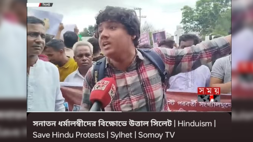 এর আগে রবিবার সিলেটে সনাতন ধর্মাবলম্বীরা বিক্ষোভ করেন। ওই বিক্ষোভে সময় টিভিতে সাক্ষাৎকার দেন ধ্রুব। যে ভিডিওটি ‘সনাতন ধর্মাবলম্বীদের বিক্ষোভে উত্তাল সিলেট’ শিরোনামে সময় টিভির ইউটিউব চ্যানেলে প্রকাশিত হয়।