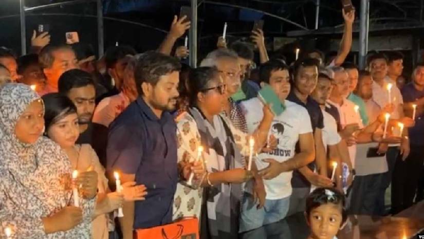 মোমবাতি প্রজ্জ্বালন করে শ্রদ্ধা জানান শতাধিক মানুষ