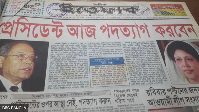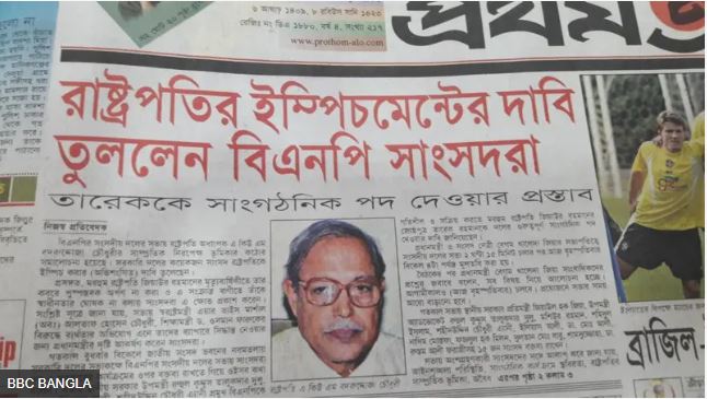 বিভিন্ন খবরের কাগজে বড় বড় হরফে, কোথাও লাল কালি দিয়ে শিরোনাম হয়েছে যে রাষ্ট্রপতি অধ্যাপক বদরুদ্দোজা চৌধুরীর ওপর আস্থা নেই খোদ তার দল বিএনপির সংসদ সদস্যদের।