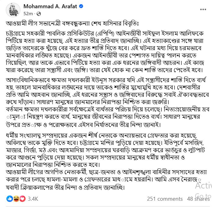 ‘এ রকম ঘটনা যে একেবারেই ঘটেনি, সেটা তো আমরা অস্বীকার করছি না। ঘটনাগুলোর তদন্তও তো আমরা শুরু করেছিলাম। সেগুলোর তদন্ত শেষ করলেই কার কতটুকু দায়, সেটা পরিষ্কার হয়ে যাবে।’ বলেন আওয়ামী লীগের যুগ্ম সাধারণ সম্পাদক।