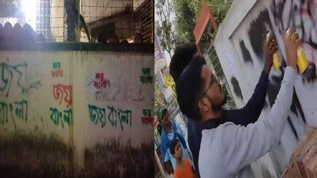 রাতের আঁধারে জুলাই গ্রাফিতির ওপর ‘জয় বাংলা’ লিখলো আওয়ামী কর্মীরা