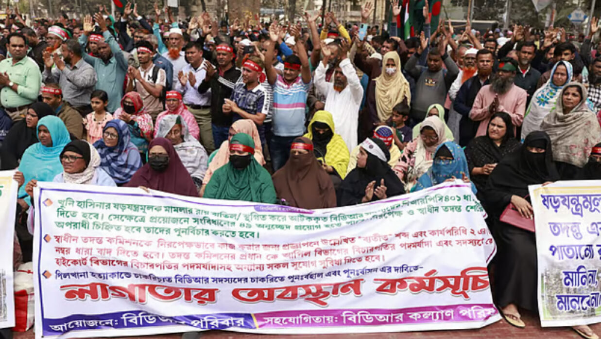 এর আগে সোমবার (১০ ফেব্রুয়ারি) রাত ৯টায় ঢাকা বিশ্ববিদ্যালয়ের (ঢাবি) মধুর ক্যান্টিনে চাকরিচ্যুত বিডিআর সদস্যদের চাকরিতে পুনর্বহাল এবং কারাবন্দিদের মুক্তিসহ ৬ দফা দাবিতে অবস্থান কর্মসূচি পালন করার ঘোষণা দের চাকরিচ্যুত বিডিআর সদস্য ও তাদের পরিবারের সদস্যরা।