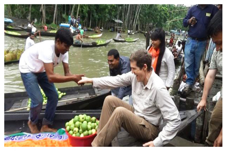 পেয়ারার ভাসমান হাটে চাষিদের সঙ্গে মার্কিন রাষ্ট্রদূত