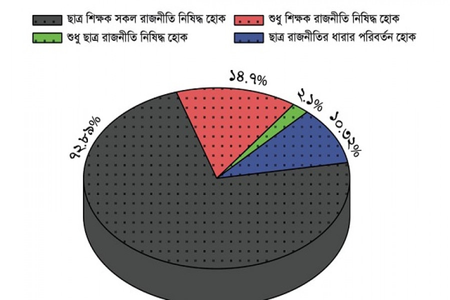 ছাত্র-শিক্ষক রাজনীতি নিষিদ্ধ চান ৯০ শতাংশ মানুষ