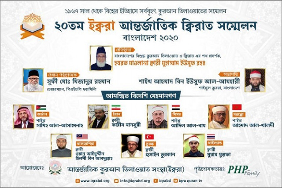 আগামী ২৪ জানুয়ারি ‘২০তম ইক্বরা আন্তর্জাতিক কিরাত সম্মেলন বাংলাদেশ-২০২০’ অনুষ্ঠিত হবে। ওইদিন সকাল ৯টা থেকে রাত ১০টা পর্যন্ত জাতীয় মসজিদ বায়তুল মোকাররম চত্বরে ‘আন্তর্জাতিক কুরআন তিলাওয়াত সংস্থার (ইকরা)’ আয়োজনে ও পিএইচপি ফ্যামিলির পৃষ্ঠপোষকতায় এ সম্মেলন অনুষ্ঠিত হবে।