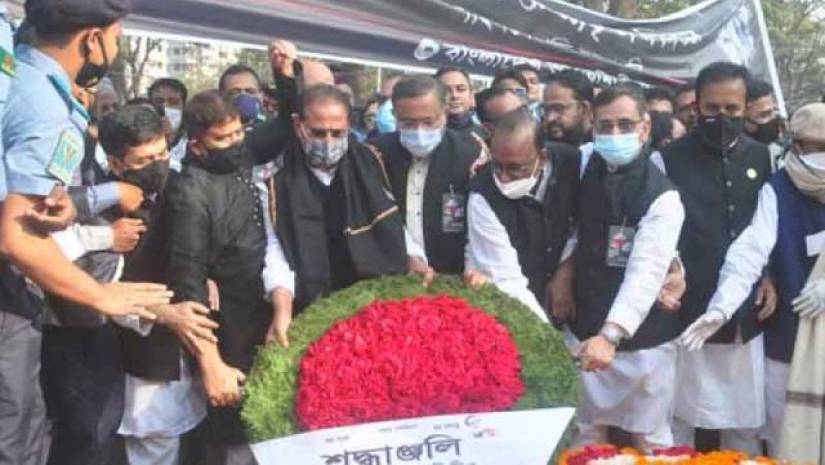 এর আগে একুশের প্রথম প্রহর মধ্যরাতে আওয়ামী লীগের সাধারণ সম্পাদক ও সড়ক পরিবহন ও সেতুমন্ত্রী ওবায়দুল কাদের নেতৃত্বে শহিদ মিনারে আওয়ামী লীগ সভাপতি প্রধানমন্ত্রী শেখ হাসিনার পক্ষে শহিদ বেদীতে পুষ্পার্পণে অংশ নেন তিনি।