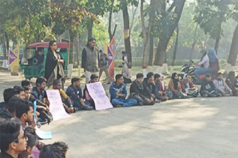 আজ বৃহস্পতিবার (২ জানুয়ারি) দ্বিতীয় দিনের মতো বেতন-ফি কমানো, আবাসন সংকট নিরসন, পরীক্ষার খাতায় কোডিং পদ্ধতি চালু, মুক্তচিন্তা বিকাশে সহায়ক অধ্যাদেশের ব্যবস্থা করার দাবিতে অবস্থান ধর্মঘট পালন করছেন শিক্ষার্থীরা।