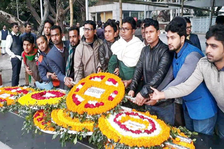 বঙ্গবন্ধুর প্রতিকৃতিতে কবি নজরুল কলেজ ছাত্রলীগের শ্রদ্ধাঞ্জলি