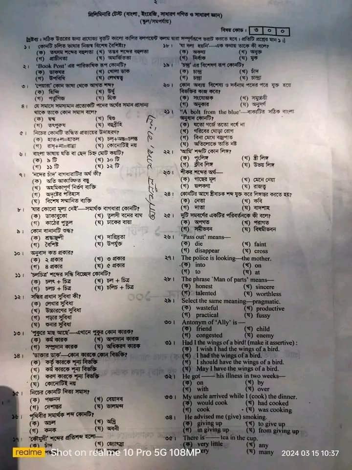 স্কুল/সমপর্যায় প্রিলিমিনারি পরীক্ষার প্রশ্ন দেখুন নিচে