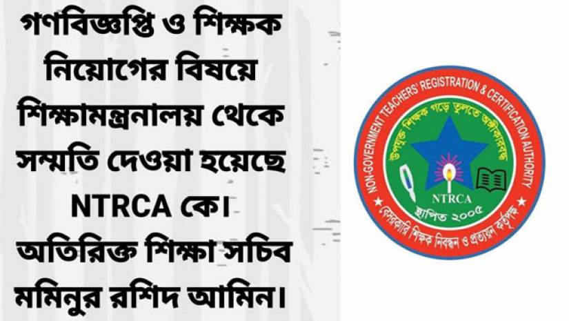 জানা গেছে, গণবিজ্ঞপ্তি ও শিক্ষক নিয়োগের বিষয়ে শিক্ষা মন্ত্রণালয় থেকে এনটিআরসিএকে সম্মতি দেয়া হয়েছে। মন্ত্রণালয়ের অতিরিক্ত সচিব মোমিনুর রশিদ আমিন এ সম্মতি দিয়েছেন- ফেসবুকের বিভিন্ন গ্রুপে এমন একটি তথ্য আজ ছড়িয়ে পড়েছে।
