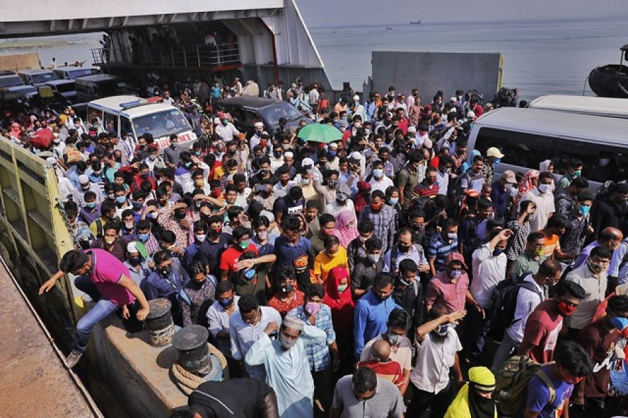 করোনা ঝুঁকি সঙ্গে নিয়ে জীবিকার তাগিদে পাঁয়ে হেঁটে, পিকআপ ভ্যান ও ট্রাকে করে ঢাকা ফিরছেন গার্মেন্টস শ্রমিকরা। বসে নেই বেসরকারি চাকুরিজীবিরাও। করোনাভাইরাস প্রতিরোধে সাধারণ ছুটি ১১ এপ্রিল পর্যন্ত বর্ধিত করা হলেও আগামীকাল থেকে খুলছে বিভিন্ন গার্মেন্টসসহ বেসরকারি প্রতিষ্ঠান। এ অবস্থায় মনে করোনা আতঙ্ক থাকলেও বাধ্য হয়েই কর্মস্থলে ফিরছে হাজার হাজার নারী-পুরুষ। শ্রমিকদের কথা একটাই করোনার ঝুঁকি থাকলেও জীবিকার তাগিদে কর্মস্থরে পৌঁছতেই হবে। না হলে চাকরিটা বাঁচানো যাবে না।