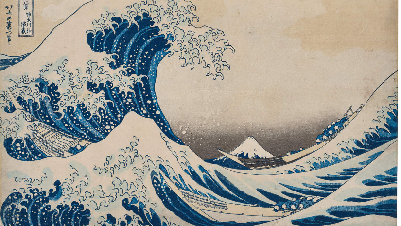 ১৮৩০ দশকের দশকের গোড়ার দিকে তৈরি করা, "গ্রেট ওয়েভ" তিনটি মাছ ধরার নৌকাকে চিত্রিত করে যা আজকে জাপানের চিবা প্রিফেকচারে বিক্ষুব্ধ সমুদ্রে যুদ্ধ করছে। এটি "উকিও-ই" নামে পরিচিত একটি ধারার অংশ যেখানে শিল্পীরা কাঠের ব্লক প্রিন্টিং ব্যবহার করে কাগজে ব্যাপকভাবে কাজ তৈরি করতে দেখেছেন।