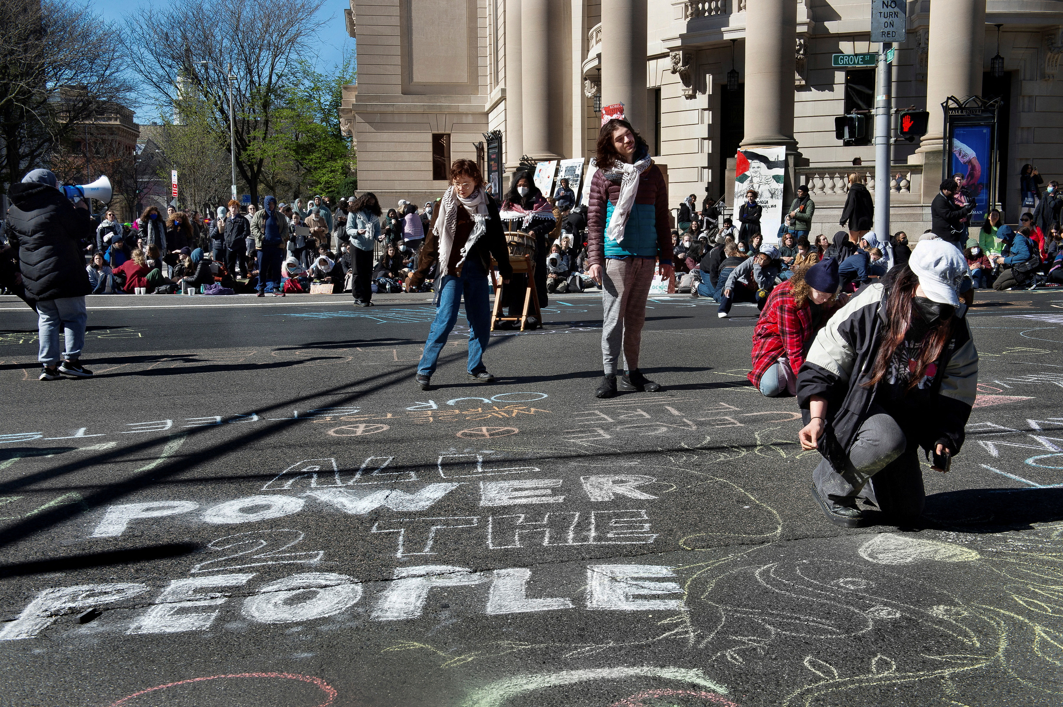 শিক্ষার্থীদের পরিচালিত ইয়েল ডেইলি নিউজের ভাষ্য অনুযায়ী, পুলিশ এখান থেকে ৪৫ জনেরও বেশি প্রতিবাদকারীকে গ্রেপ্তার করে। নিউ ইয়র্কে নিউ ইয়র্ক বিশ্ববিদ্যালয় ক্যাম্পাসের একটি খোলা চত্বর দখল করে সেখানে তাঁবু গেড়ে অবস্থান নেয় প্রতিবাদকারী শিক্ষার্থীরা। কর্তৃপক্ষ তাদের চত্বরটি ছেড়ে দিতে বলে, না ছাড়লে পরিমাণ ভোগ করতে হবে বলে সতর্ক করে। কিন্তু কয়েকশত প্রতিবাদকারী এসব অগ্রাহ্য করে প্রতিবাদ চালিয়ে যায়।