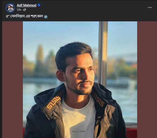 অন্যদিকে, উপদেষ্টা আসিফ মাহমুদ তার ভেরিফায়েড ফেসবুকে নিজের ছবি পোস্ট করেছেন। ছবিতে দেখা যায়, একটি লেকের পাড়ে দাঁড়িয়ে আছেন তিনি। ছবির ক্যাপশনে তিনি লিখেছেন, ‘৫ ডিগ্রি সেলসিয়াসের শরৎকাল’। এ ছবিতেও অনেকে কমেন্টস করেছেন, তিনি সুইজারল্যান্ড গেছেন।