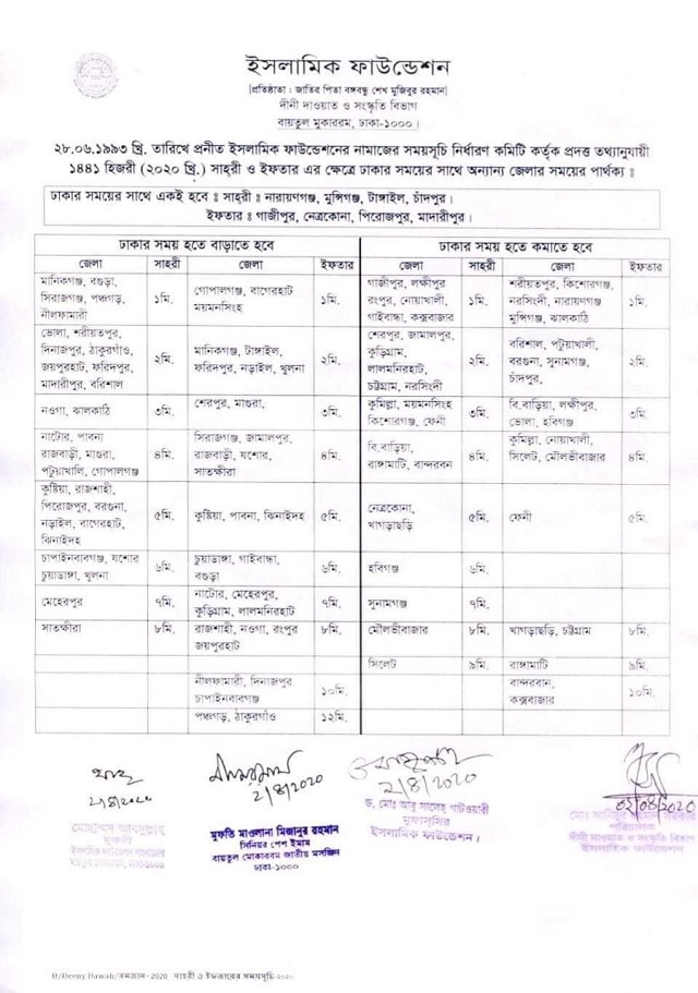পবিত্র মাহে রমজানে সাহরী ও ইফতারের সময়সূচি দেখে নিন