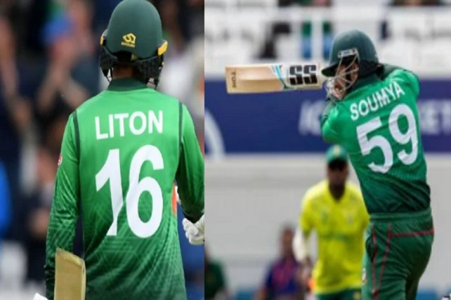 বাংলাদেশ দলের আরেক হার্ডহিটার ব্যাটসম্যান সৌম্য সরকার। ২৭ বছর বয়সী এই ব্যাটসম্যান জার্সির জন্য পছন্দ করেছিলেন বিকেএসপিতে তার তিন ডিজিটের ক্রেডিট নম্বর ৪৫৯। কিন্তু সেটা বড় হয়ে যায় বলে ‘৪’ বাদ দিয়ে শুধু ‘৫৯’ রাখেন সৌম্য।