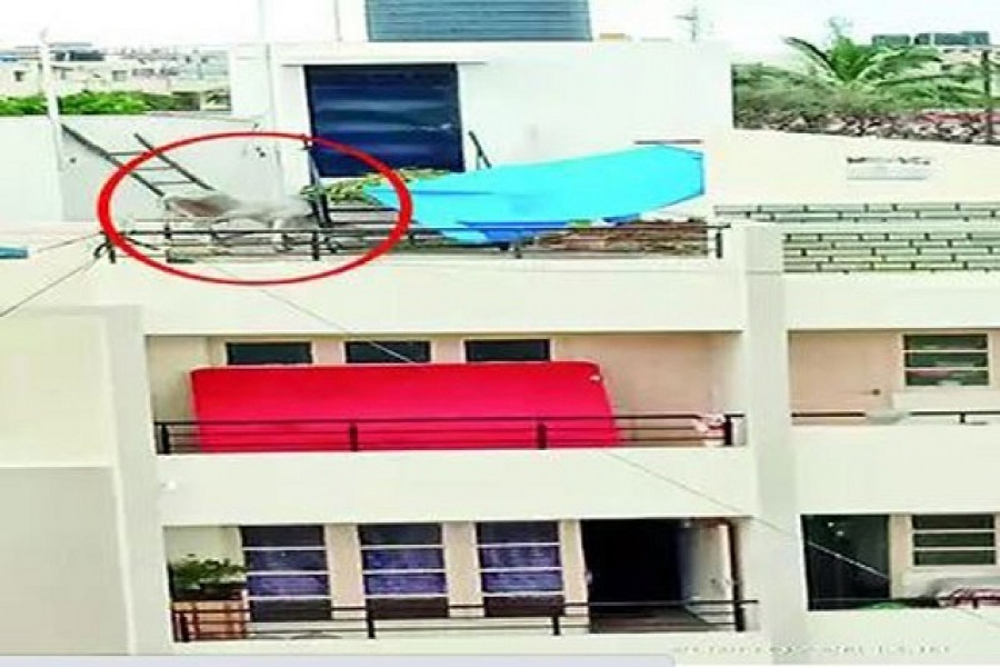ভারতের বেঙ্গালুরের একটি বাসার ছয়তলা ছাদ থেকে একটি গরু উদ্ধার করা হয়েছে। এ ঘটনায় থানায় মামলাও হয়েছে। গরুটি বর্তমানে কেজি হলি পুলিশ স্টেশনে রাখা হয়েছে।এদিকে এই ঘটনায় প্রাণীদের অধিকার নিয়ে কাজ করা সুনিল দুগার বলেছেন, এ ব্যাপারে মামলা হয়েছে। গরুটি ভবনের ছাদে লুকিয়ে রাখা ছিল।