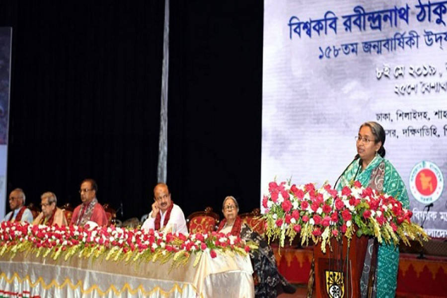 বুধবার বিকালে রাজধানীর বাংলাদেশ শিল্পকলা একাডেমির জাতীয় নাট্যশালা মিলনায়তনে সংস্কৃতি বিষয়ক মন্ত্রণালয়ের আয়োজনে জাতীয় পর্যায়ে বিশ্বকবি রবীন্দ্রনাথ ঠাকুরের ১৫৮তম জন্মবার্ষিকী উদযাপনের উদ্বোধনী অনুষ্ঠানে প্রধান অতিথির বক্তৃতায় তিনি এসব কথা বলেন।