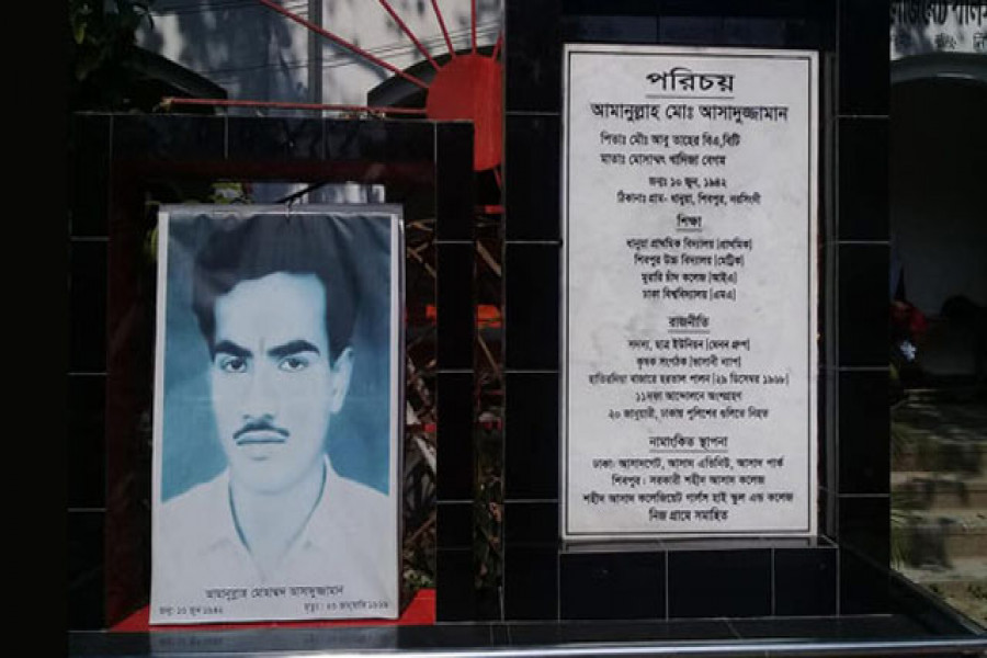 নিজ বাড়ির বকুলতলায় কবর শহীদ আসাদের। অযত্নে-অবহেলায় তার সমাধিতে শ্যাওলা জমেছে। কেবলমাত্র আসাদ দিবসের আগে তার সমাধিটি পরিষ্কার করা হয়। কিন্তু সারাবছর এটির কোনো খোঁজখবর থাকে না।