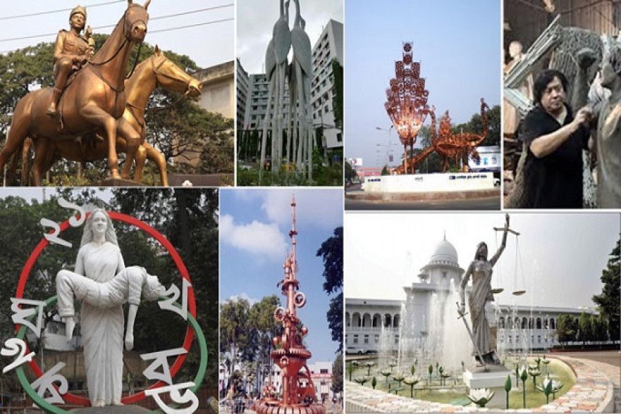 ধানমন্ডি ২৭ নম্বর মোড়ে নির্মাণ করেন ভাস্কর্য ‘ইস্পাতের কান্না’। ভাষা আন্দোলন নিয়ে পরিবাগে তিনি বানিয়েছিলেন ভাস্কর্য ‘জননী ও গর্বিত বর্ণমালা’।