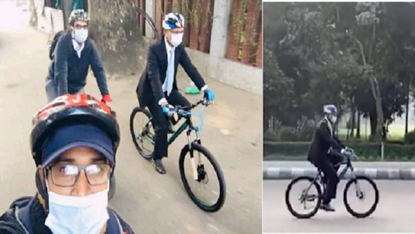 রবিবার (১৩ ডিসেম্বর) সকালে রাজধানীর কাকরাইলের সার্কিট হাউজ সংলগ্ন বিচারপতি ভবন থেকে তিনি হাইকোর্টের উদ্দেশে রওনা হন। এসময় পথে তার সঙ্গী হন সুপ্রিম কোর্টের দুই আইনজীবী। বিচারপতির সাইকেল চালানোর একটি ছবি ইতোমধ্যে আইনজীবীরা তাদের নিজস্ব ফেসবুক অ্যাকাউন্টে শেয়ার করেছেন।