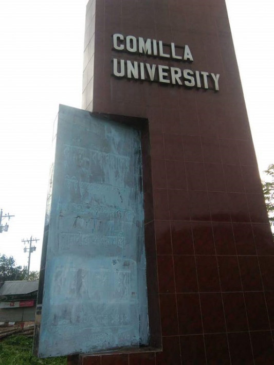 কুমিল্লা বিশ্ববিদ্যালয়ের (কুবি) বেলতলী বিশ্বরোড সংলগ্ন গেইটের ভিত্তিপ্রস্তরে থাকা বেগম খালেদা জিয়া এবং বিএনপি সরকারের মন্ত্রীদের নামসহ নামফলকের একাংশ মুছে দিয়েছে বিশ্ববিদ্যালয় শাখা ছাত্রলীগ।