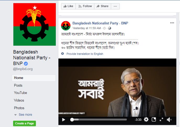 ২৮ ডিসেম্বর বিএনপির অফিসিয়াল ফেসবুক পেজ থেকে ছাড়া পোস্ট