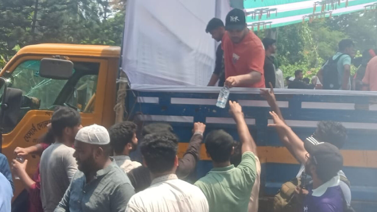 শুক্রবার (৯ মে) রাষ্ট্রীয় অতিথি ভবনের সামনে এবং পরে পানির ফোয়ারার সামনে তৈরি করা মঞ্চের সামনে পানি ও স্যালাইন বিতরণ করতে দেখা যায়।