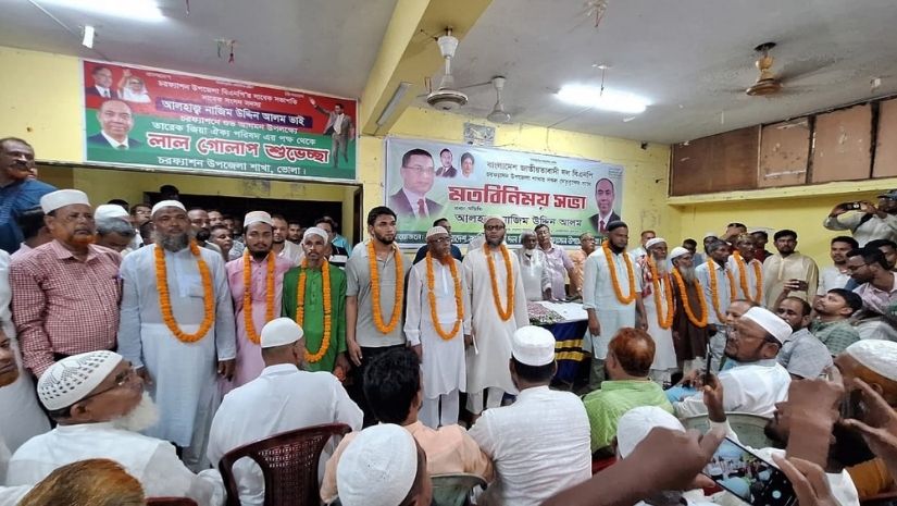সোমবার (২৯ সেপ্টেম্বর) সন্ধ্যায় ভোলা-৪ (চরফ্যাশন ও মনপুরা) আসনের সাবেক সংসদ সদস্য নাজিম উদ্দীন আলমের নিজ বাসভবনে আনুষ্ঠানিকভাবে ফুলের মালা পরিয়ে তাদের স্বাগত জানানো হয়।