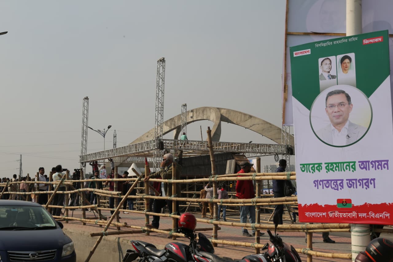 বিএনপির দলীয় নেতাকর্মীদেরও দাবি, তারেক রহমানের দেশে প্রত্যাবর্তন উপলক্ষে বৃহস্পতিবার দেশের ইতিহাসের অন্যতম বৃহত্তম জনসমাবেশ হতে যাচ্ছে। শুধু দলীয় শক্তি প্রদর্শন নয় বরং তারেক রহমানের এই আগমনকে দেশের গণতান্ত্রিক প্রক্রিয়ায় এক নতুন মোড় হিসেবে দেখছেন রাজনৈতিক বিশ্লেষক ও সাধারণ জনতা।