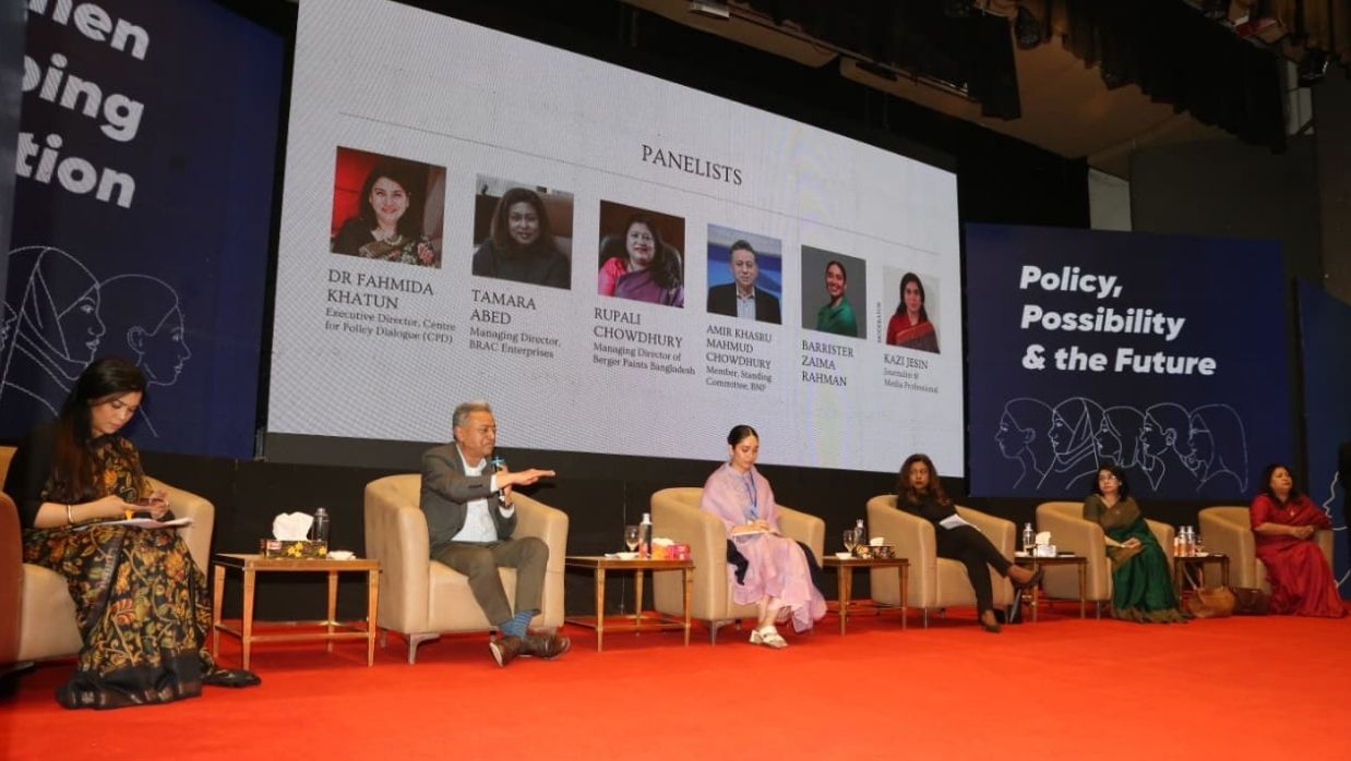 অনুষ্ঠানে অর্থনীতিবিদ ড. ফাহমিদা খাতুন বলেন, নারীদের উন্নয়নের ক্ষেত্রে সবচেয়ে বড় বাধা হলো অর্থায়নে প্রবেশাধিকার বা একসেস টু ফাইন্যান্স। বিশেষ করে ক্ষুদ্র নারী উদ্যোক্তারা ঋণ পেতে নানা প্রতিবন্ধকতার মুখে পড়েন। ভবিষ্যৎ সরকারগুলোর এ বিষয়ে বিশেষ নজর দেওয়া প্রয়োজন। স্বল্পোন্নত দেশের তালিকা থেকে বাংলাদেশ উত্তরণের পর নারীরা নতুন চ্যালেঞ্জের মুখোমুখি হবে বলেও সতর্ক করেন তিনি।