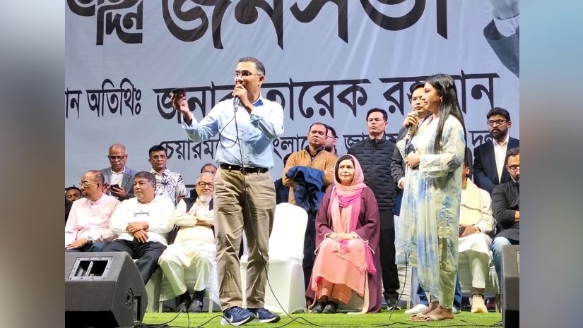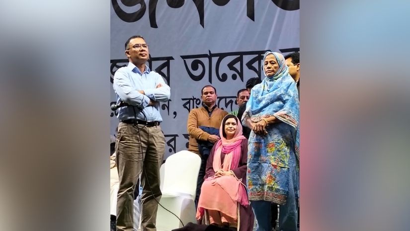 ভাষানটেকে জনসভায় ভ্যানচালক জুয়েলকে মঞ্চে ডেকে স্থানীয় সমস্যা শোনেন তারেক রহমান © সংগৃহীত
